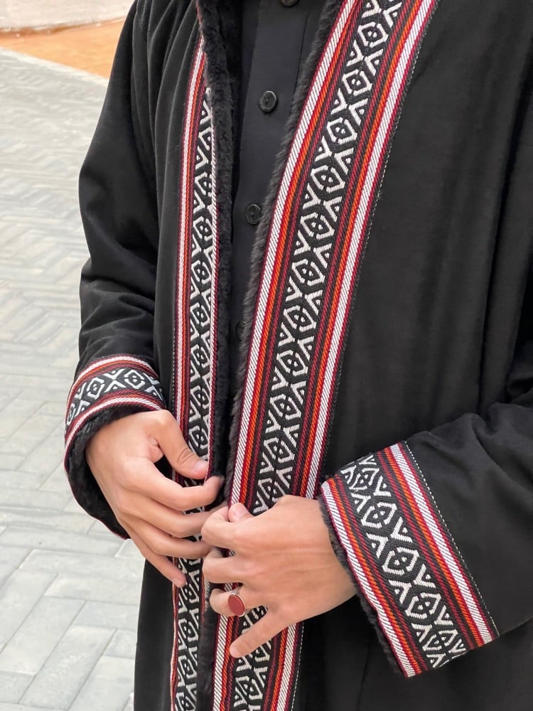 • من الخارج قماش جوخ ثقيل - فرو ناعم - قماش سدو