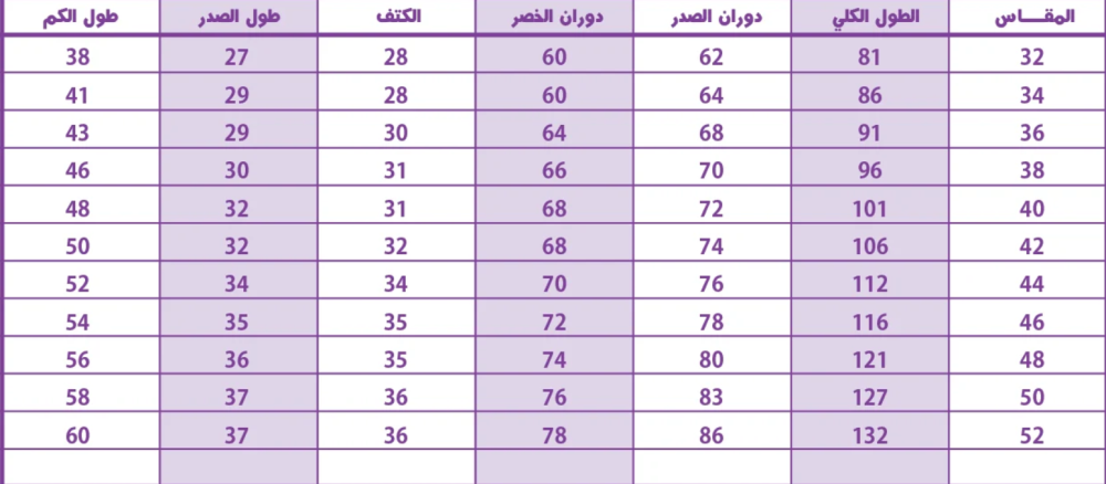 في حال عدم توفر مقاس مناسب للجميلة في الجدول القياسي، يُرجى اختيار تفصيل مقاس خاص وتزويدنا بقياساتها المحددة عن طريق الواتس اب. يُرجى ملاحظة أنه سيتم تطبيق رسوم إضافية لتفصيل المقاس الخاص.